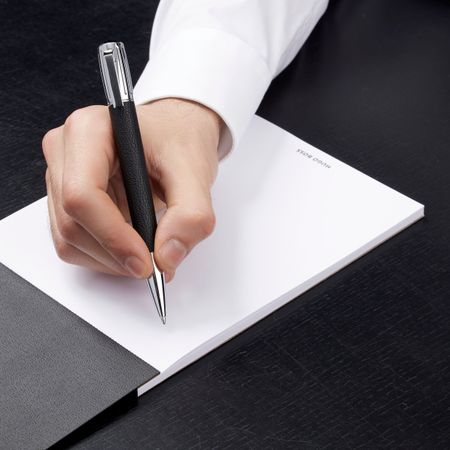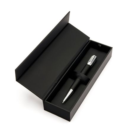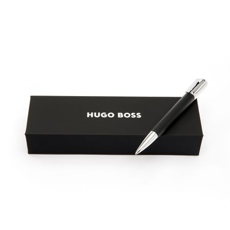 The Pure Iconic Pen line, with its tapered yet aerodynamic silhouette, redefines modern aesthetics through structural simplicity. This new Iconic edition imbues timelessness into our long-time best-selling silhouette, featuring crisp and classical chrome accents, and barrels wrapped in luxurious, subtly pebbled textures. The ribbed design and unexpectedly placed HUGO BOSS logo on the cap add a contemporary touch to this timeless piece. The grained texture is crafted from PU. This line is available in two color versions: camel or black, each adorned with chrome trims and detailing