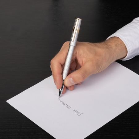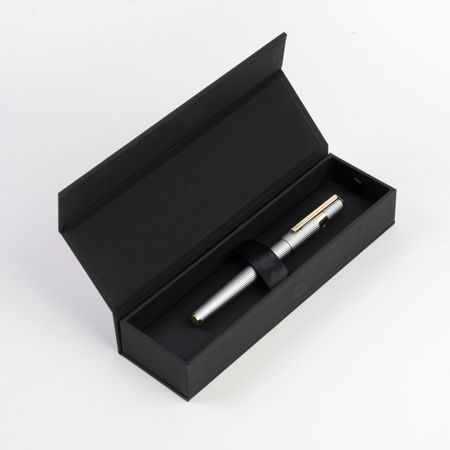 Our iconic Gear silhouette is again reinvented, this time with an engraved pattern inspired by pinstripes, a signature pattern of the HUGO BOSS fashion house, reminiscent of its suiting heritage. The print is made anew with an innovative surface treatment, and by a contrasted, polished logo ring placed on the upper barrel. This light gold & silver color combination is bringing a slight retro touch to this otherwise resolutely modern piece.
