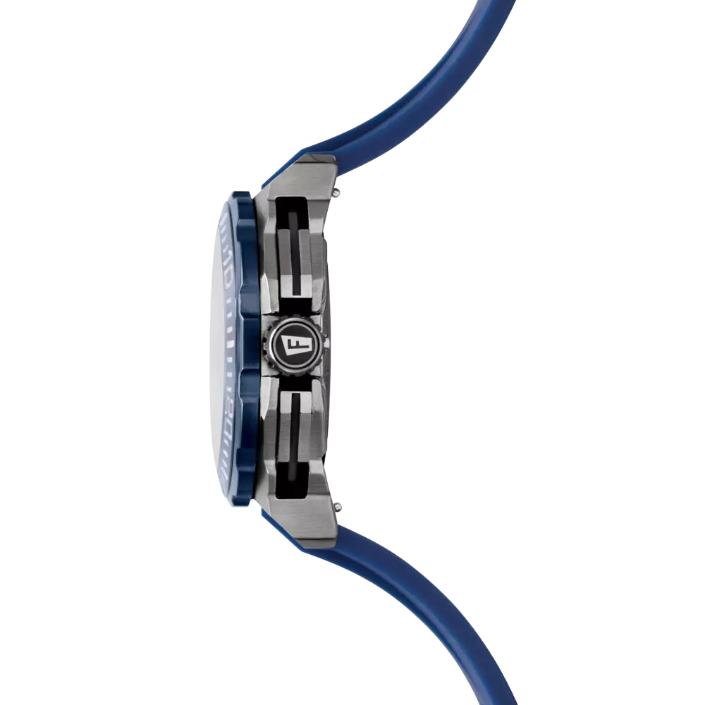 | Dial | White Chronograph with blue accents with luminescent indices and hands |