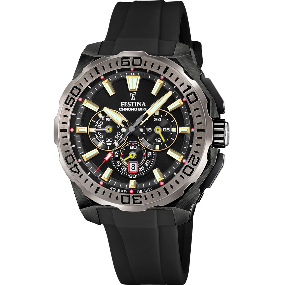 Festina chrono bike watches are for you! Some of our collections have contributed in a very special way to the fame and prestige of the Festina brand, as is the case with the Festina chrono bike watches. These watches, inspired by the world of cycling, with their dynamic lines and light, compact design, have brought the Festina brand unparalleled prestige, particularly thanks to events with international repercussions such as the Tour de France. As we said before, the Festina chrono bike for men have contributed to the success of the brand, and if this collection of Festina chrono bike has contributed so much to the fame of the brand, it is thanks to its original and innovative design which is a subtle mix between utility and elegance! The new Festina chrono bike watch collection is the worthy heir of a collection that has evolved over the years while retaining its original values, especially thanks to the reliability of the functions that they offer, Festina chrono bike watches are timepieces, racy with a sporty look and that will never let you down!