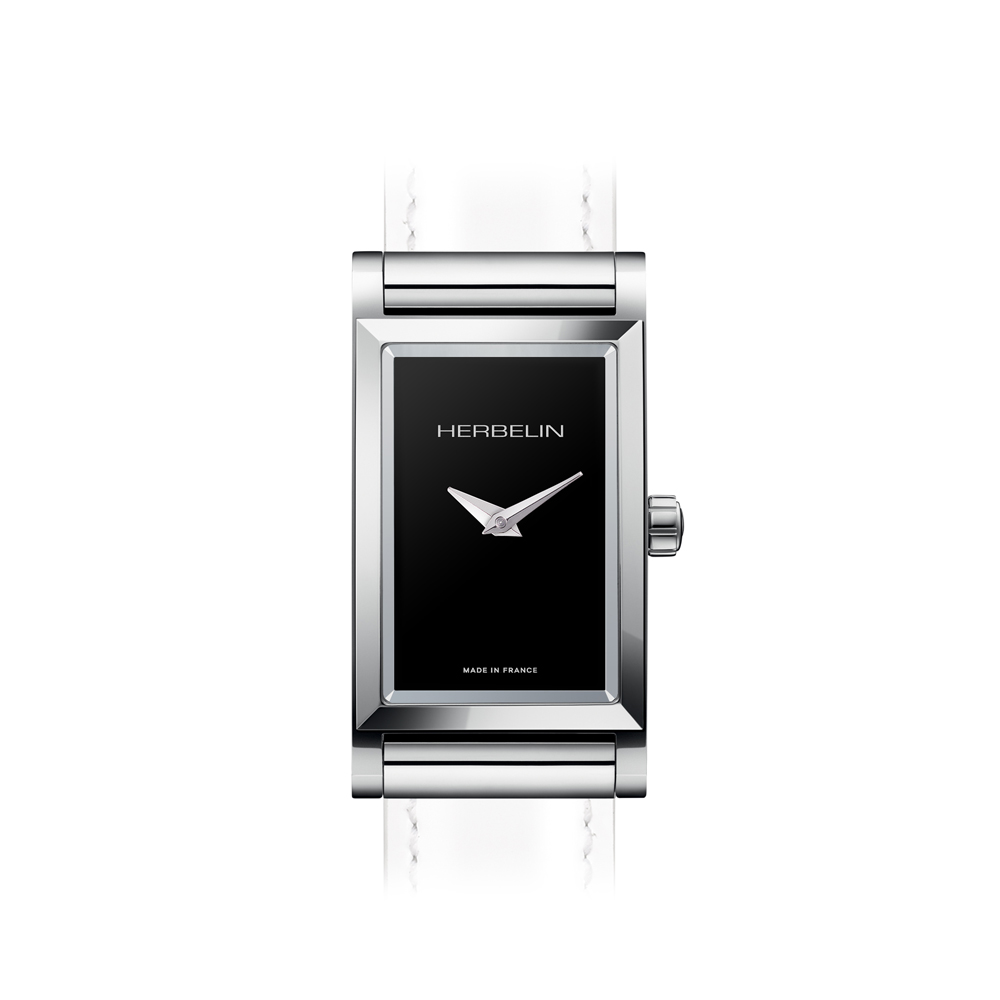 This Antares slim rectangular case encloses a black dial, which brings a touch of elegance and refinement to the design. Match it with red, white or tan leather strap or a barcelet of your choice to allow you to change your style at any time. Antares with its patented interchangeable strap system, let your inspiration flow. Vary styles endlessly to express elegance and perfection, a unique combination just like you.