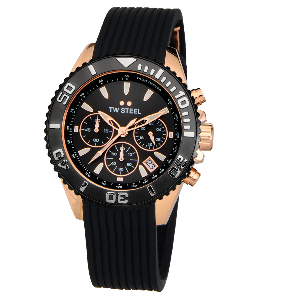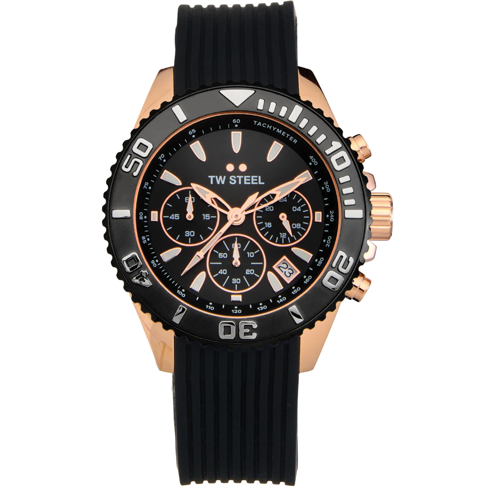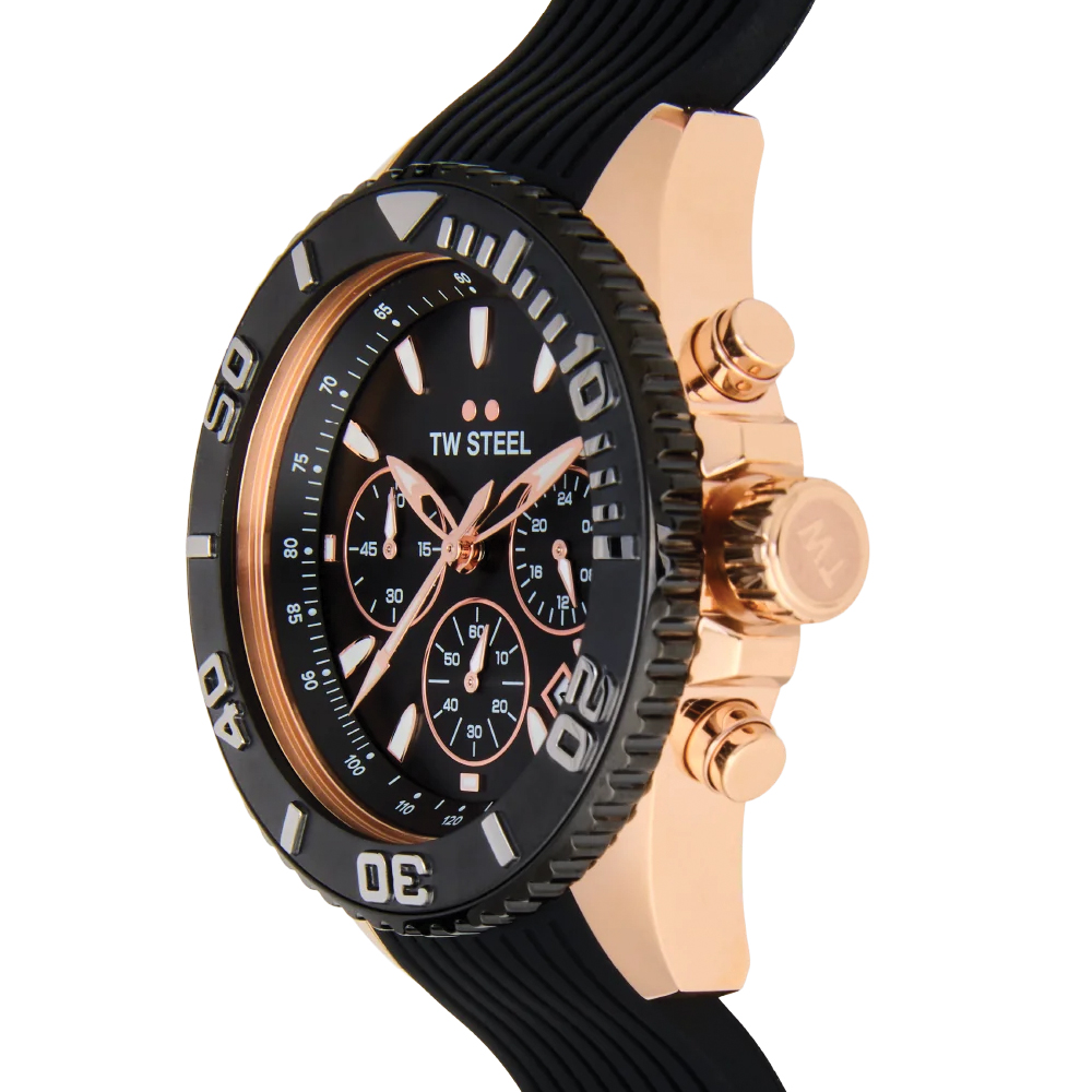 With the Vanceur Diver collection, TW Steel navigates in style. The VA3 features a chronograph with a rosegold case, a black rubber strap, 10 ATM and a 2-year global warranty.