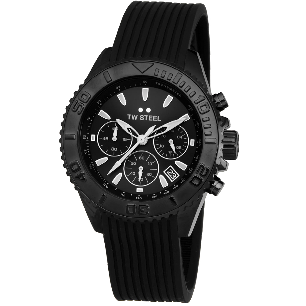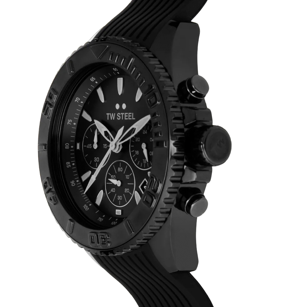 With the Vanceur Diver collection, TW Steel navigates in style. The VA4 features a chronograph with a shiny black case, a black rubber strap, 10 ATM and a 2-year global warranty